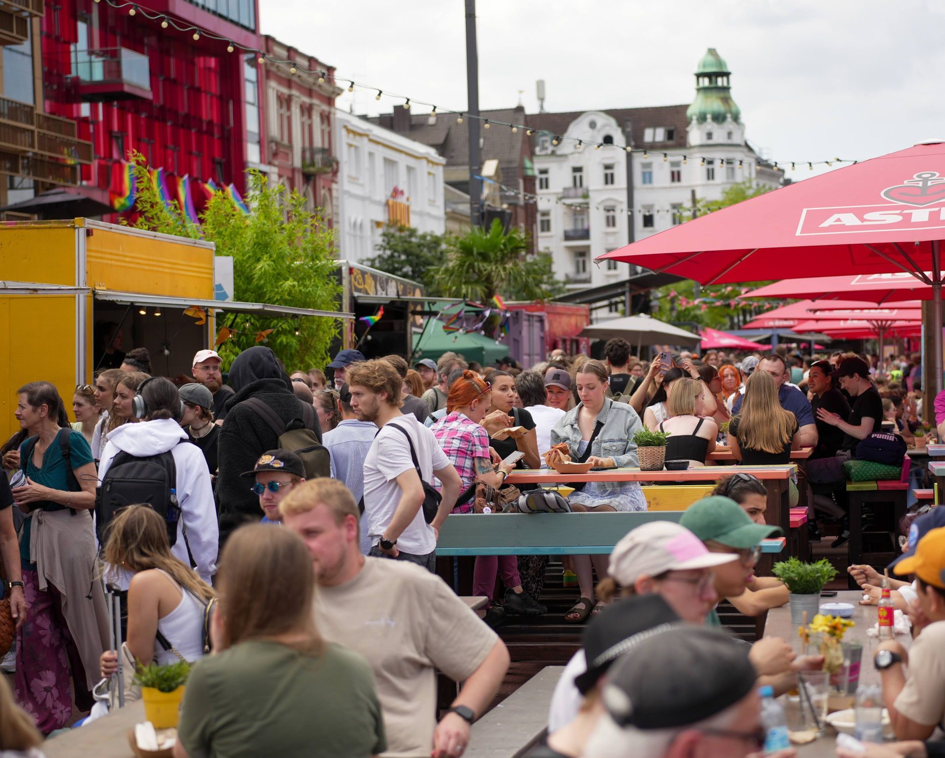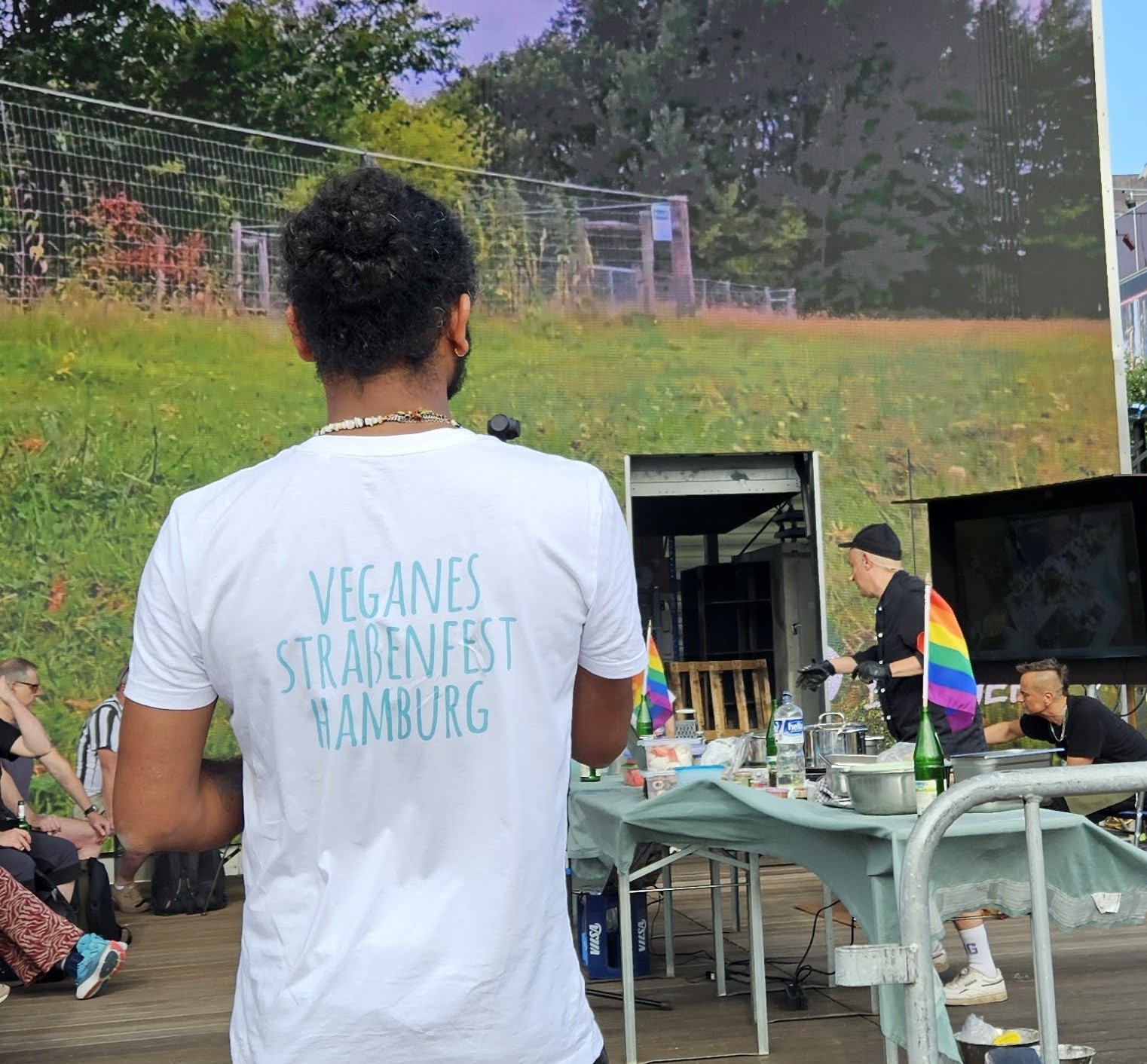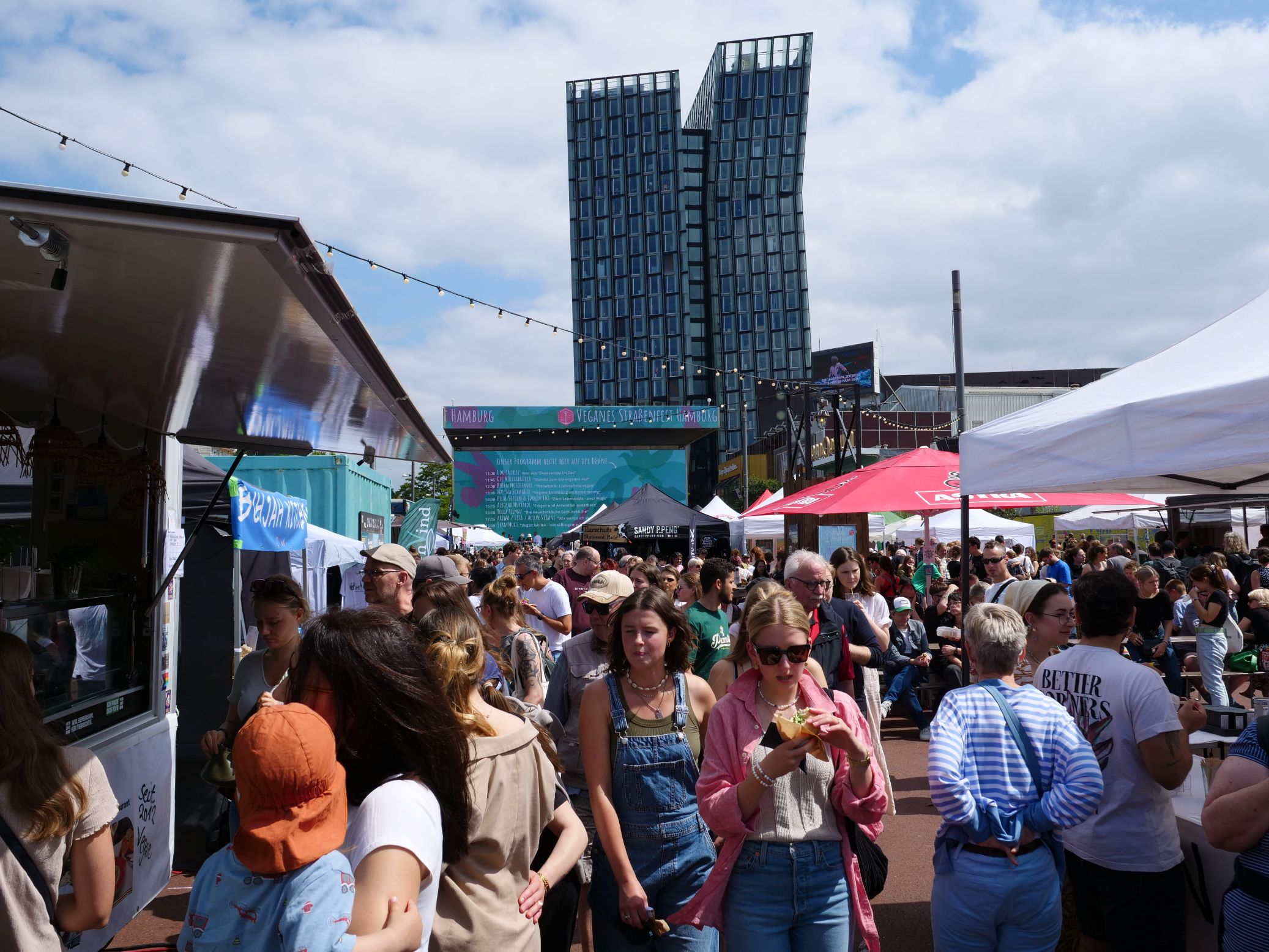 Das Vegane Straßenfest Hamburg 2025 fand am 26. Juli 2025 auf dem Spielbudenplatz auf St. Pauli statt. Mit dabei waren neben 49 Ständen und 9 Bühnenrprammpunkten auch rund 20.000 Besuchende über den Tag verteilt.